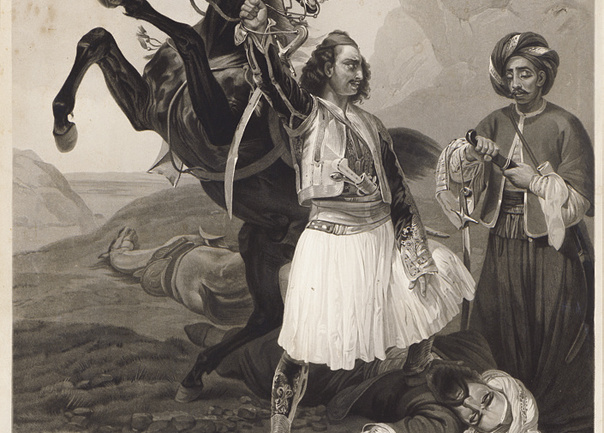 Περιγραφή: Λιθογραφία επιζωγραφισμένη με το χέρι, γαλλικής έκδοσης, με την ένδειξη κάτω στο κέντρο: GRECS APRÈS UN REVERS (Έλληνες μετά από αποτυχημένο εγχείρημα), βασισμένη σε πίνακα του H. Decaisne. Κάτω αριστερά: Decaisne pinx! 1826, πιο κάτω: Paris chez Fontaine, Boulevard St. Martin, No31. Κάτω δεξιά: Léon Noël Lith. 1828 και πιο κάτω: Litho. de Benard. Επάνω δεξιά, φέρει τον αριθμό 2. Εικονίζεται η γνωστή σκηνή, που έχει φιλοτεχνήσει ο Decaisne, με τους απογοητευμένους Έλληνες και που έχει αναπαραχθεί και σε φιλελληνικά πιάτα της Toulouse.