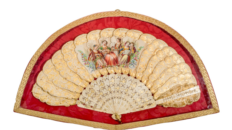 Περιγραφή: Πολύχρωμη γαλλικής κατασκευής λιθογραφημένη και επιχρωματισμένη με το χέρι χαρτονένια βεντάλια, με πολλά αναμνηστικά και ενημερωτικά στοιχεία και στις δύο όψεις, σε στρογγυλό σχήμα. Εκδόθηκε σε ανάμνηση της συναυλίας που δόθηκε στις 28 Απριλίου 1826, στο Vauxhall στο Παρίσι, όπου οι πλούσιες και όμορφες κυρίες της παρισινής αριστοκρατίας τραγούδησαν για χάρη των αγωνιζόμενων Ελλήνων. (Φθορές και λεκέδες. Συντηρημένη η περιφέρεια.)