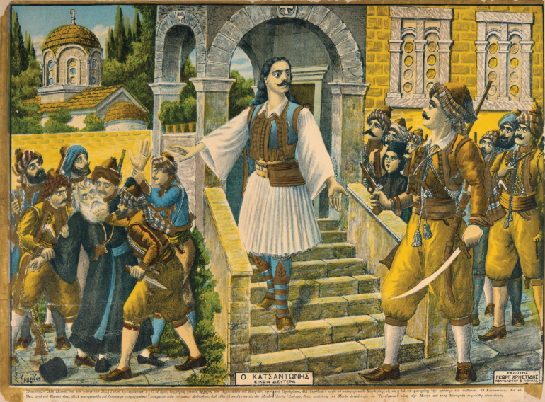 C0637Κατηγορία: ΝΕΟΕΛΛΗΝΙΚΑ ΧΑΡΑΚΤΙΚΑ - ΠΡΟΕΠΑΝΑΣΤΑΤΙΚΗ ΠΕΡΙΟΔΟΣΚωδικός: C0637Υλικό: ΧΑΡΤΙΧρονολογία κατασκευής: 1930 (10ετία)Διαστάσεις: 42,5x56,5 εκ.Περιγραφή: Χρωμολιθογραφία του Σ. Χρηστίδη, εκδοθείσα από τον ίδιο, με τίτλο: Ο ΚΑΤΣΑΝΤΩΝΗΣ. ΕΙΚΩΝ ΠΡΩΤΗ. Πολυπρόσωπη σύνθεση με τον ήρωα μαχόμενο εναντίον των Τούρκων. Κάτω από…