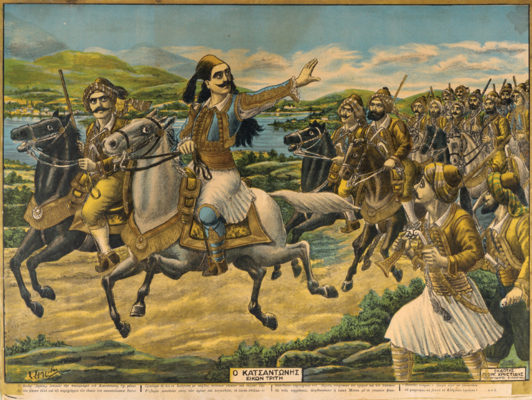 C0639Κατηγορία: ΝΕΟΕΛΛΗΝΙΚΑ ΧΑΡΑΚΤΙΚΑ - ΠΡΟΕΠΑΝΑΣΤΑΤΙΚΗ ΠΕΡΙΟΔΟΣΚωδικός: C0639Υλικό: ΧΑΡΤΙΧρονολογία κατασκευής: 1930 (10ετία)Διαστάσεις: 43×56,5 εκ.Περιγραφή: Χρωμολιθογραφία του Σ. Χρηστίδη, εκδοθείσα από τον ίδιο, με τίτλο: Ο ΚΑΤΣΑΝΤΩΝΗΣ. ΕΙΚΩΝ ΤΡΙΤΗ. Πολυπρόσωπη σύνθεση με τον ήρωα έφιππο να ηγείται των έφιππων και…