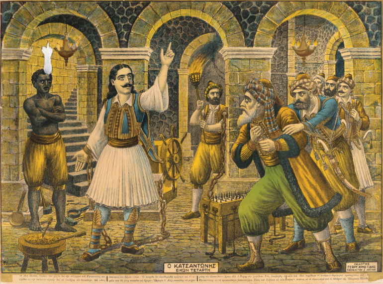 C0638Κατηγορία: ΝΕΟΕΛΛΗΝΙΚΑ ΧΑΡΑΚΤΙΚΑ - ΠΡΟΕΠΑΝΑΣΤΑΤΙΚΗ ΠΕΡΙΟΔΟΣΚωδικός: C0638Υλικό: ΧΑΡΤΙΧρονολογία κατασκευής: 1930 (10ετία)Διαστάσεις: 42×56,5 εκ.Περιγραφή: Χρωμολιθογραφία του Σ. Χρηστίδη, εκδοθείσα από τον ίδιο, με τίτλο: Ο ΚΑΤΣΑΝΤΩΝΗΣ. ΕΙΚΩΝ ΔΕΥΤΕΡΑ. Πολυπρόσωπη σύνθεση με τον ήρωα να παραδίδεται στους Τούρκους. Κάτω από…