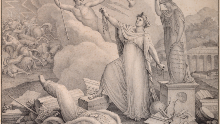 Περιγραφή: Λιθογραφία ασπρόμαυρη, με τίτλο: NIKYTAS. Είναι έργο του A. Friedel, με τον Νικηταρά (Νικήτα Σταματελόπουλο) σε προτομή (μπούστο). Από κάτω, κείμενο σε δύο στήλες (αγγλικά και γαλλικά): A Chief Leader in the Greek Army, distinguished for his patriotism & disinterestedness. (Ένας καπετάνιος στον Ελληνικό Στρατό, διακριθείς για τον πατριωτισμό και την ανιδιοτέλειά του). Από κάτω: This Print forms one of the Series of Greek Portraits (1st part) now in course of Pubication in Lodon & Paris, 1827, by A. Friedel & sold by the principal Book & Printsellers in Town & Country.