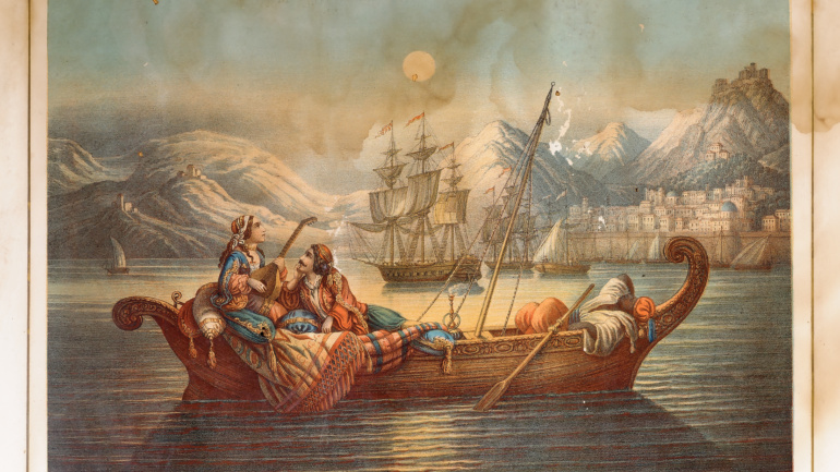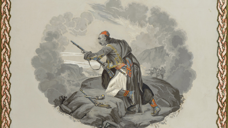 Περιγραφή: Λιθογραφία ασπρόμαυρη με τίτλο: SOUSCRIPTION POUR LES GRECS (ακολουθεί δυσανάγνωστο κείμενο). Κάτω δεξιά στην εικόνα, υπογραφή: Charler. Στο κάτω μέρος: Les ouvriers Francais. Les Grecs sont Francais!… le malheur parle! Faisons une bonne action de plus et buvons une bouteille de moins. (Οι Γάλλοι εργάτες. Οι Έλληνες είναι Γάλλοι!..η δυστυχία μιλά.! Ας κάνουμε μια επιπλέον καλή πράξη, ας πιούμε ένα μπουκάλι λιγότερο). Κάτω αριστερά: Lith. de Villain και δεξιά: Chez Gihaut Frères Éditeurs.