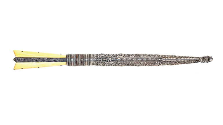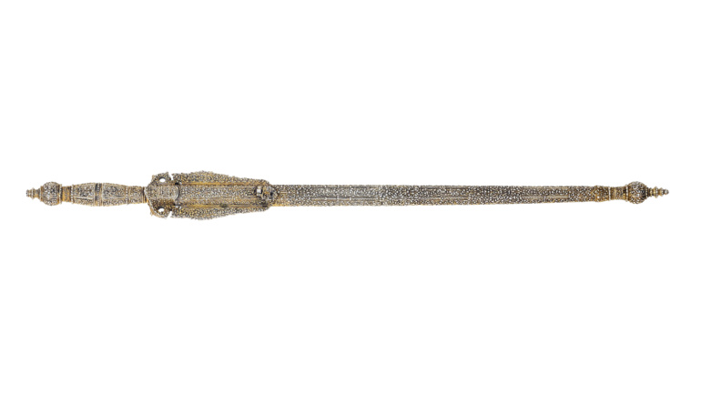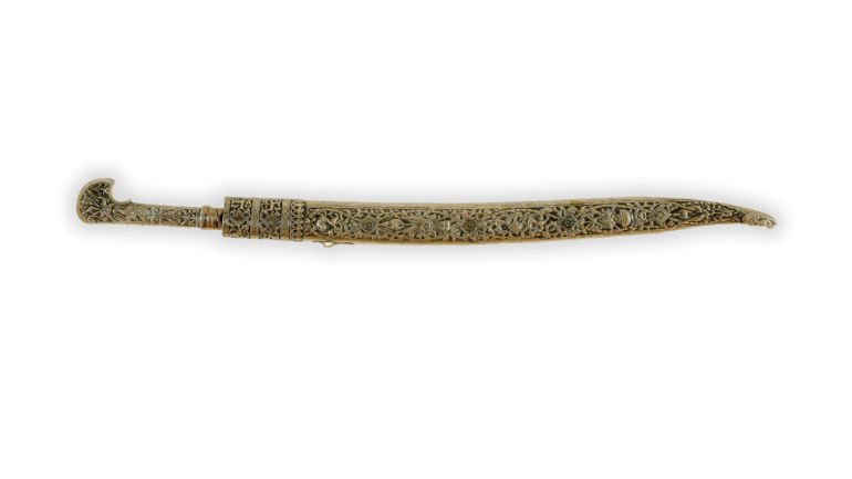 C0760-IΕνότητα: ΟΠΛΑ ΤΗΣ ΕΠΟΧΗΣ ΤΟΥ ΑΓΩΝΑΚωδικός: C0760 (C0760-I & C0760-II)Υλικό: ΑΣΗΜΙ, ΧΑΛΥΒΑΣΧρονολογία κατασκευής: Αρχές 19ου αιώναΔιαστάσεις: Μήκος 68,5 εκ.Περιγραφή: Γιαταγάνι με ασημένια θήκη και λαβή, διακοσμημένες από ηπειρώτικο εργαστήριο. Η θήκη είναι κατάφορτη με ανάγλυφες έκτυπες παραστάσεις και…
